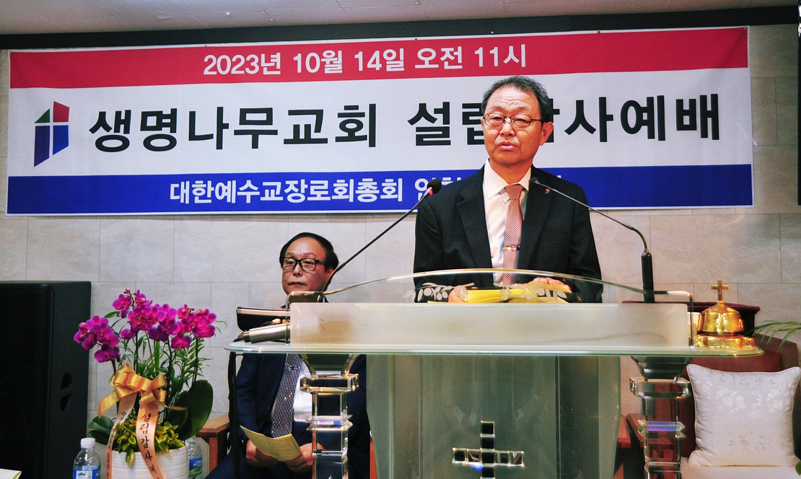▶ 생명나무교회 설립 감사예배 2023년 10월 14일 (토) 오전 11시 인 도 : 윤정현 목사 (회계) 기 도 : 권지원 목사 (산돌교회) 찬 송 : 박은숙 목사 (생명나무) 가족찬양단 (사랑은 언제나) 워쉽 (저 장미꽃 위에 이슬, 찬양 메들리) 말씀선포 : 궁철호 목사 (노회장) 하나님 나라를 이루는 교회 (롬14:17-23) -음식으로 말미암아 하나님의 사업을 무너지게 하지 말라- 봉헌기도 : 윤정현 목사 (회계) 교회설립선포 및 인정증서수여 : 궁철호 목사 권면 및 축사 : 강창배 목사 (서기) 감사의 말씀 : 박영화 목사