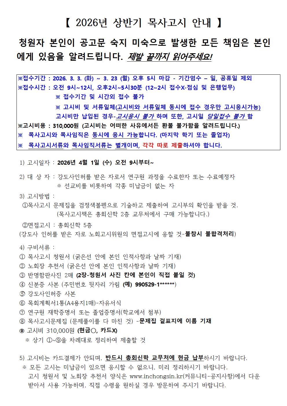 2026년 상반기 목사고시 안내